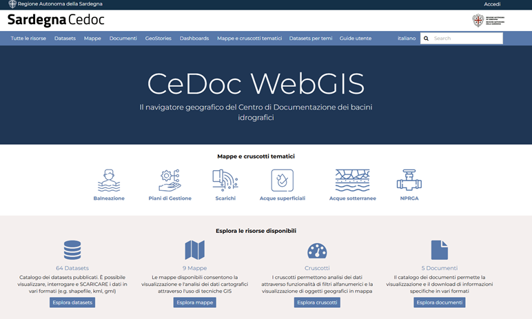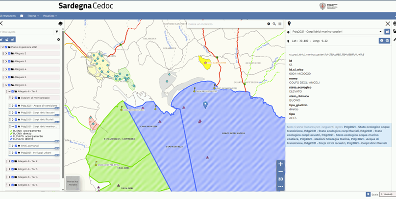 Dall’inizio degli anni 2000, il sistema informativo CeDoc (Centro Documentazione Bacini Idrografici), sviluppato dalla Regione Sardegna, utilizza la tecnologia GIS per visualizzare e distribuire dati relativi al monitoraggio e alla classificazione delle acque superficiali e sotterranee in Sardegna.