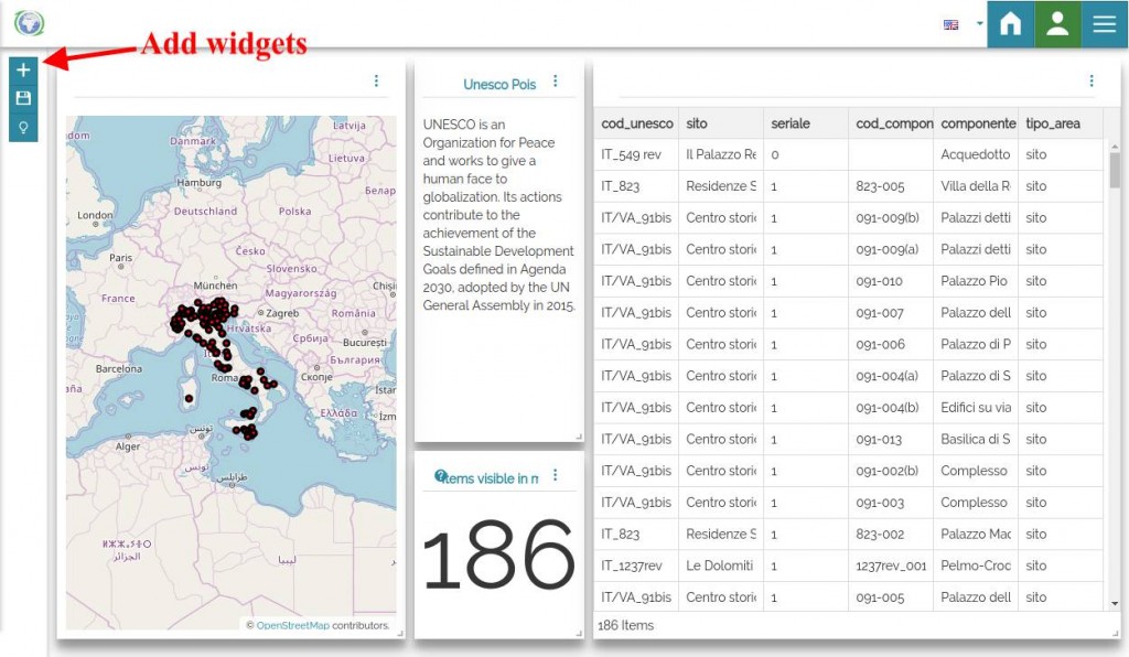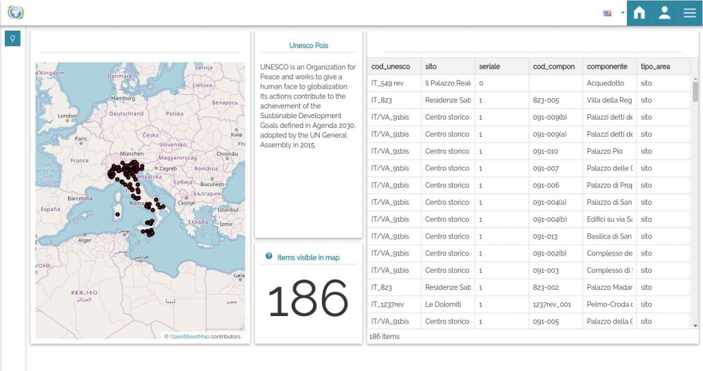 - A sample of dashboard showing UNESCO points in italy